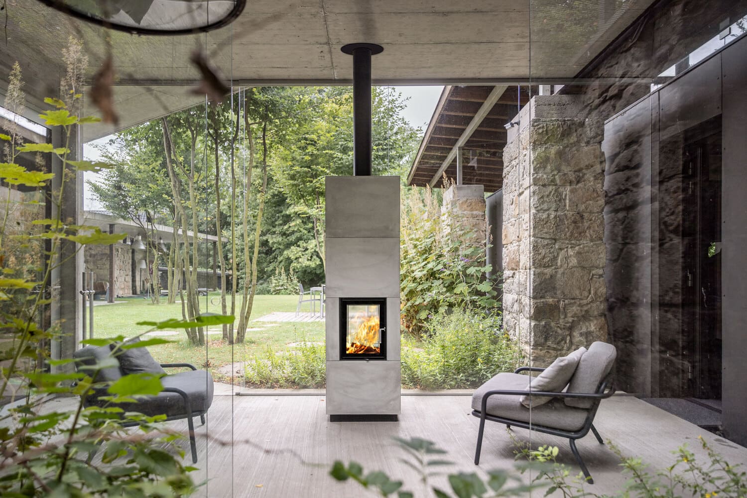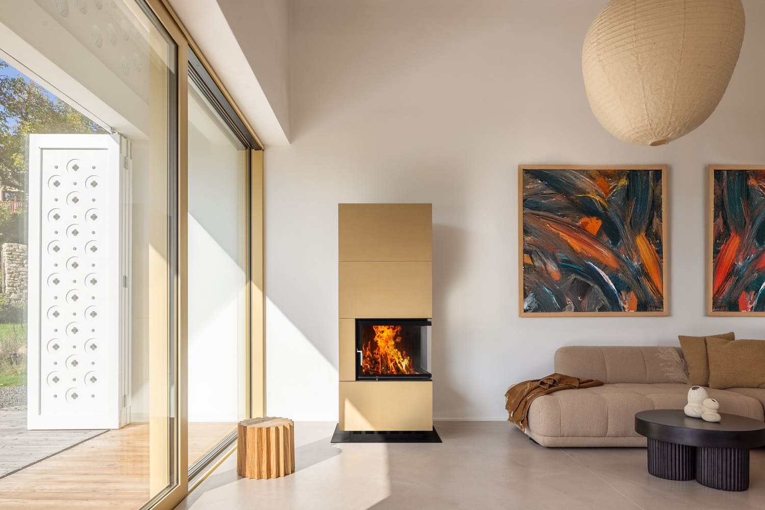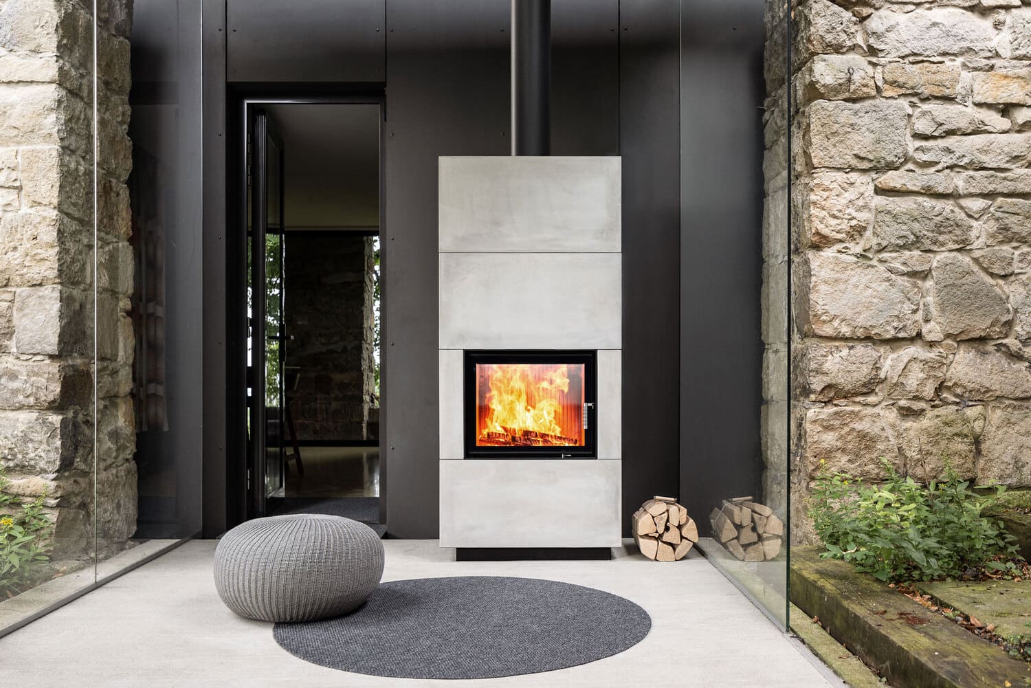 Durch die Bauweise wird die Energie besonders effizient genutzt, während gleichzeitig ein freier Blick auf das Feuer erhalten bleibt. Die Kombination aus Speichermasse, hochwertiger Verarbeitung und klarer Formensprache macht den Ofen zu einer funktionalen und gestalterisch vielseitigen Lösung.